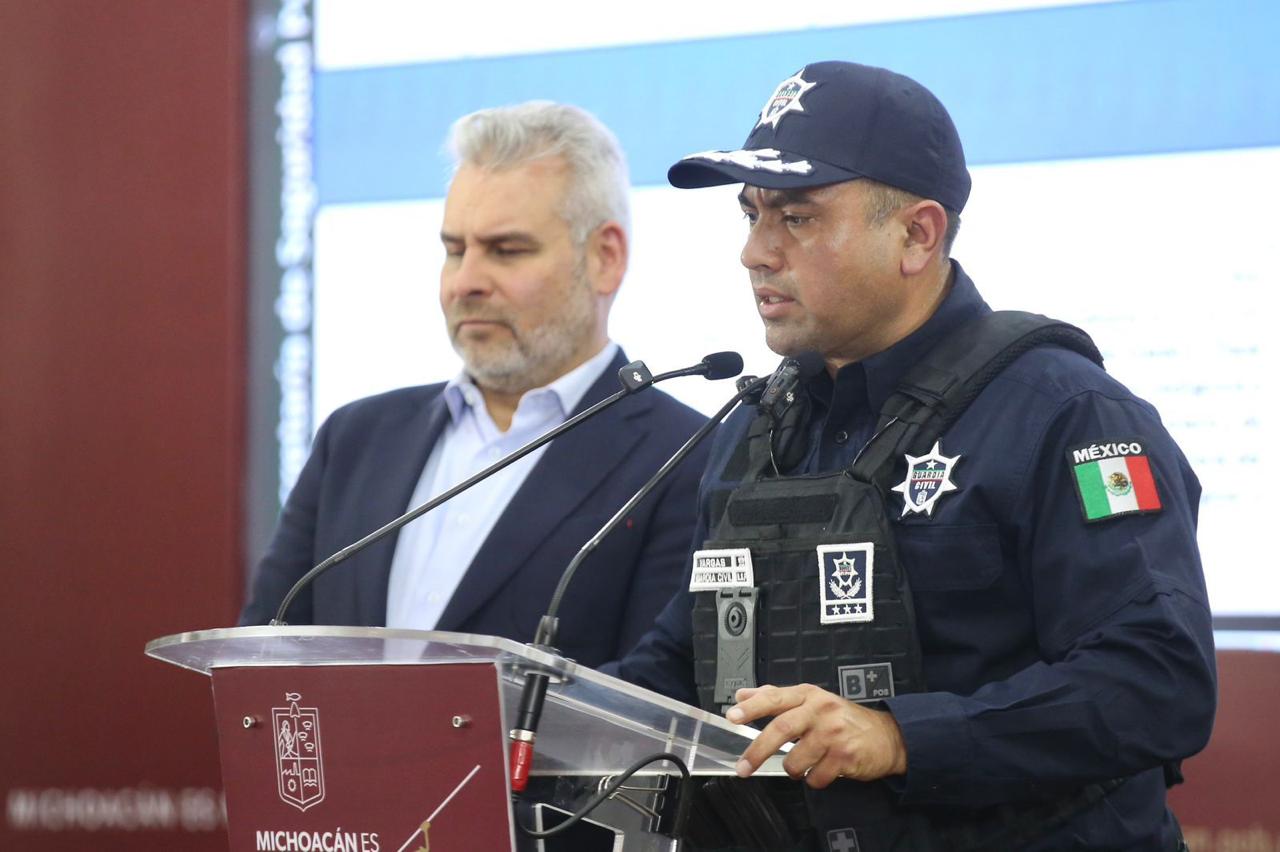 De igual manera, el subsecretario de Desarrollo Policial, de la Secretaría de Seguridad Pública, Marco Antonio Vargas, destacó que el titular de la dependencia, José Antonio Cruz Medina, encabeza acciones operativas para garantizar el orden y la seguridad en Michoacán.