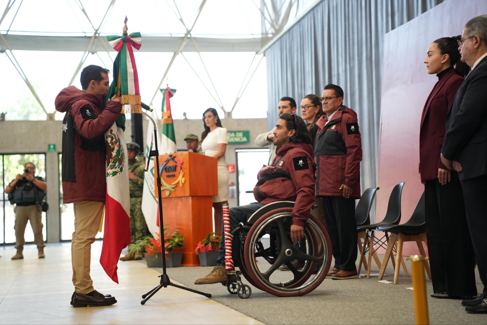 “Recibir la bandera de México rumbo a mis quintos Juegos Paralímpicos es un honor profundo”, declaró el deportista ante autoridades e invitados especiales.