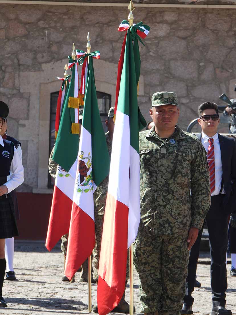 Referirse a la Bandera Mexicana, prosiguió, “es hablar de una historia de valentía y de unidad, es recordar que nuestra nación se forjó gracias al sacrificio de hombres y mujeres que soñaron con un México libre y soberano”.