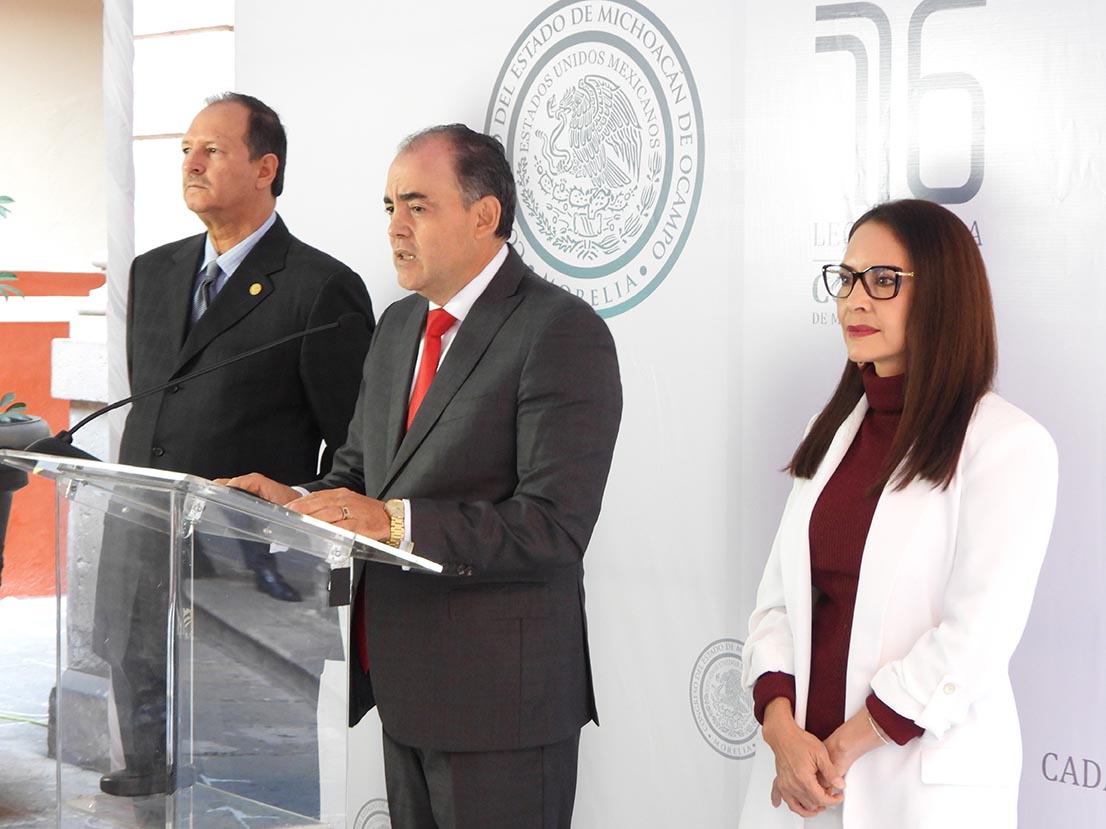 Acompañado por la diputada Nalleli Pedraza, vicepresidenta de la Mesa Directiva y el diputado David Martínez Gowman del Congreso michoacano Gaona García abordó, en rueda de prensa, dos fechas importantes para el país, el 19 de Febrero y el 24 del mismo mes.