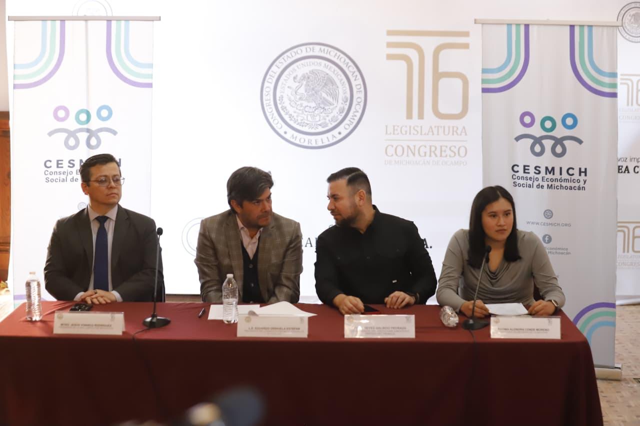Fátima Conde, acompañada por el presidente del Consejo Económico y Social de Michoacán (CESMICH), Eduardo Orihuela Estefan y el presidente de la Red Juntos por Michoacán, Jesús Vivanco Rodríguez, manifestó que con su iniciativa, se busca que la educación sea un medio para la reestructuración del tejido social, y que la cultura de la paz sea un principio rector de la educación en el estado.