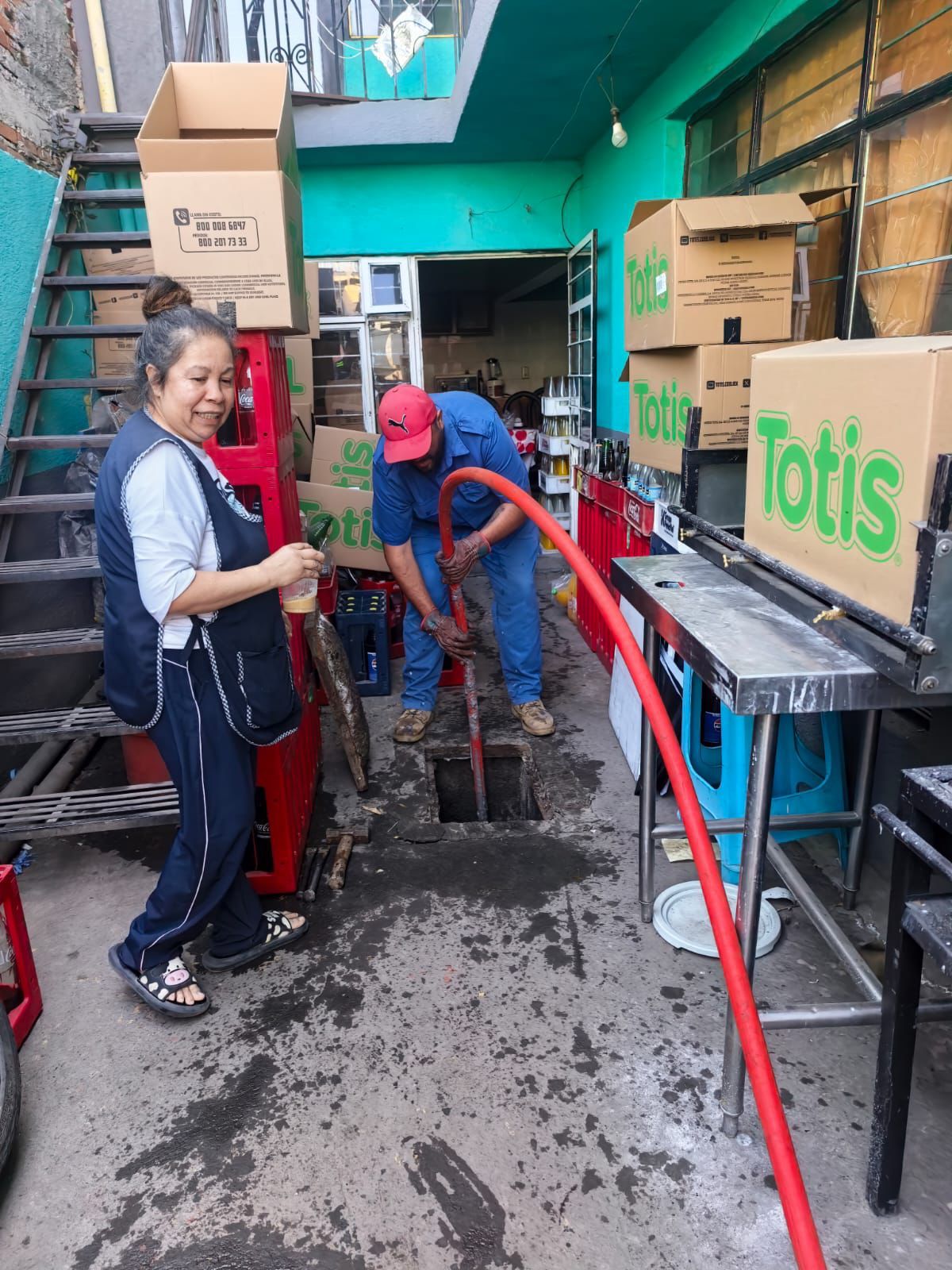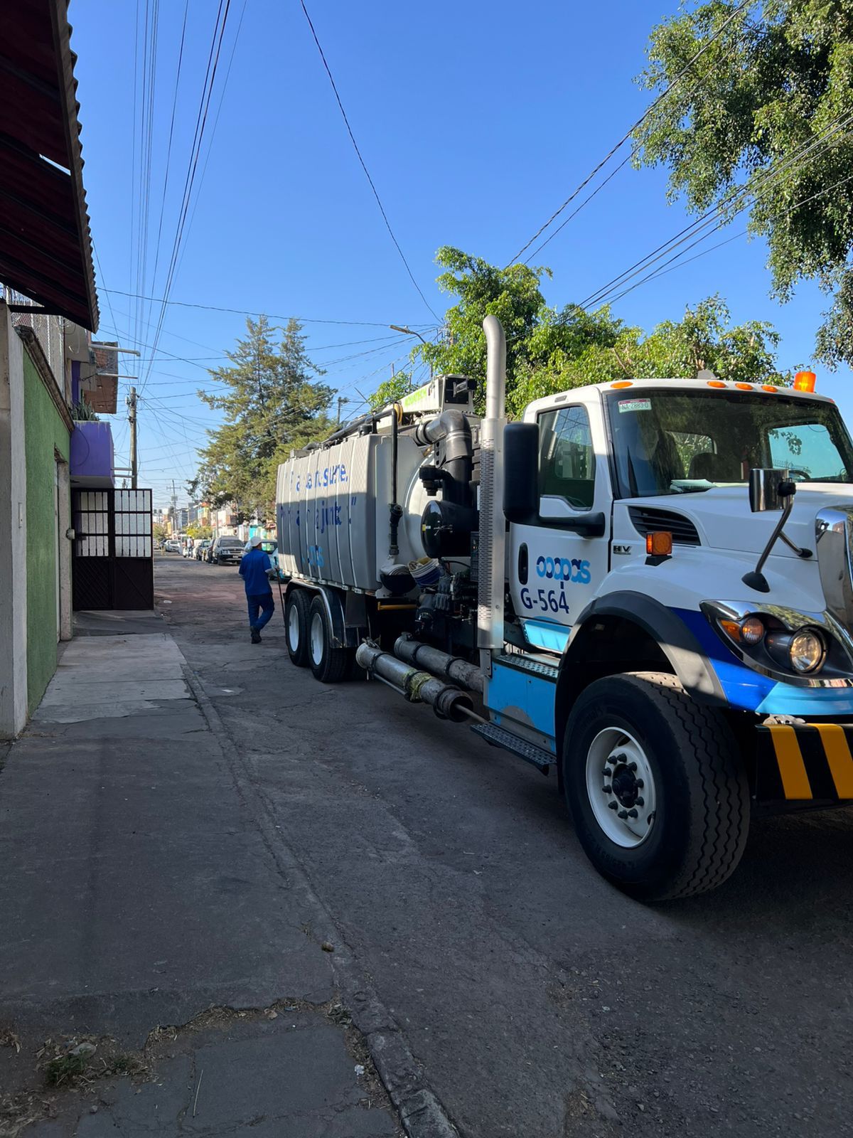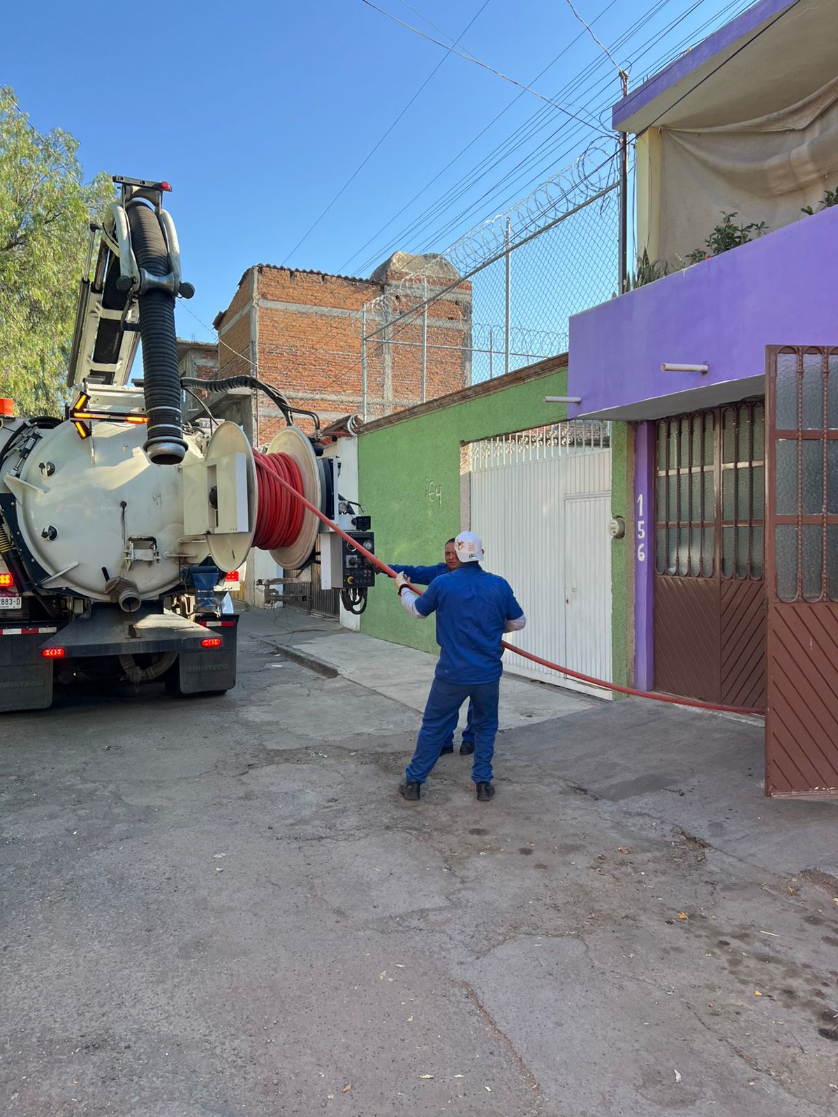 Como parte de estas acciones, se dispuso de un equipo Vactor, el cual realizó trabajos de limpieza en los drenajes sanitarios de algunas viviendas, así como en la red principal, con el objetivo de prevenir obstrucciones y mejorar el funcionamiento del sistema sanitario en el sector.