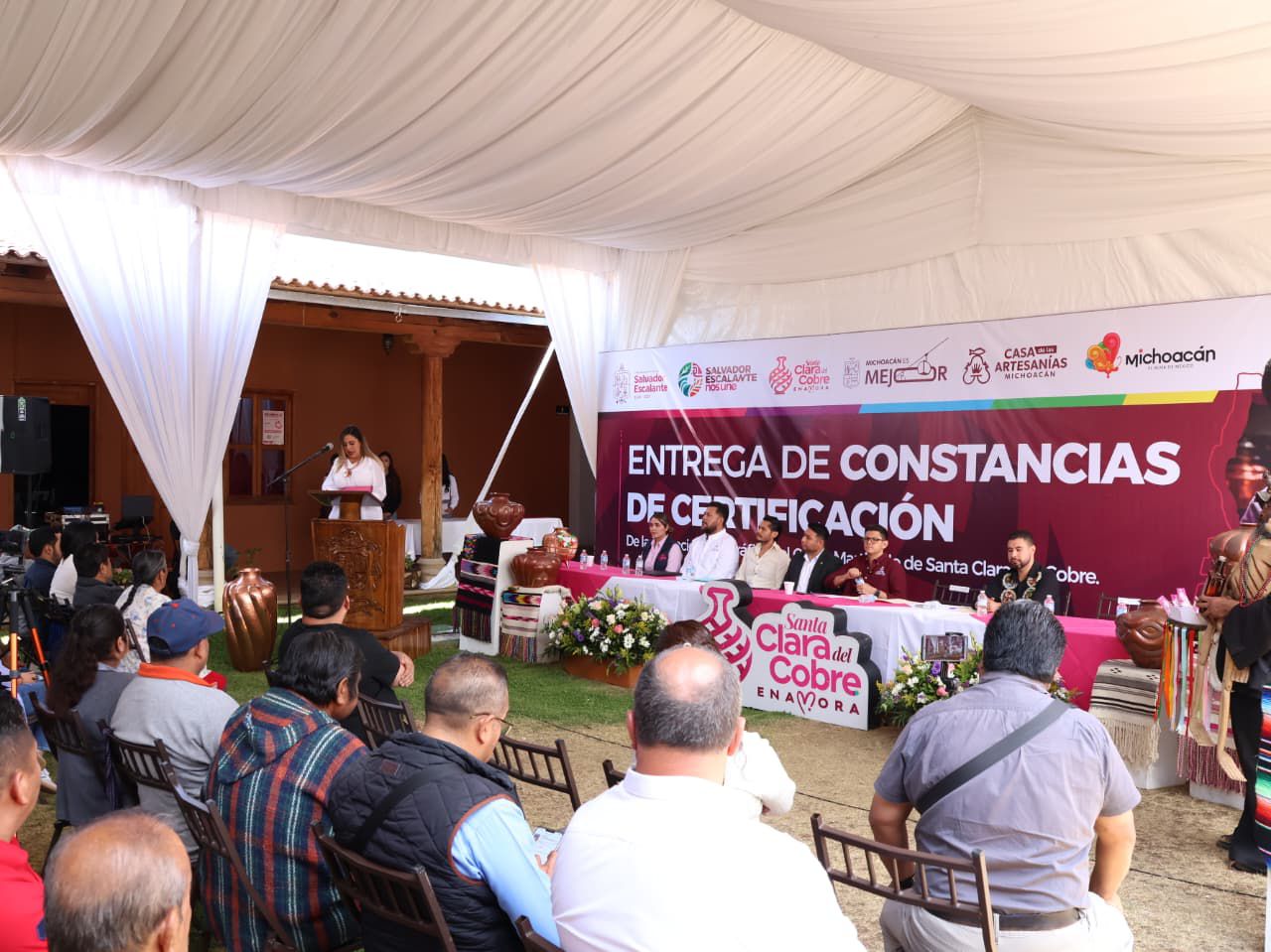 Salvador Escalante, Michoacán, .- Un total de 48 personas artesanas de Santa Clara del Cobre recibieron certificaciones y etiquetas oficiales que garantizan la autenticidad, calidad y origen geográfico de sus piezas, las cuales cuentan con la Indicación Geográfica (IG), informó la Casa de las Artesanías de Michoacán (Casart).